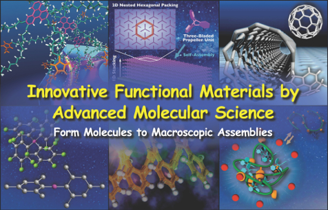 様々な物性を有する分子群の創製と、精密な分子集積化を可能にする手法の開発を通じ、有機・高分子からなる「ソフトマテリアル」の革新的機能を開拓しています。光吸収・発光特性、電導性、磁性など、物性に富むπ電子系分子群をモチーフに、立体構造、電子構造、適切な元素・官能基の導入などを戦略的に考え、機能創製に向け合目的的に分子をデザインします。合成した分子は、「自発的組織化」や「ナノサイズの足場」などを利用して空間特異的に集積化し、巨視的にも分子の配列が制御された機能材料を創製します。また、π電子系分子の特徴を活かして、これらを配位子とした遷移金属錯体を構築し、新しい機能を備えた集積型錯体および反応触媒への展開を行っています。