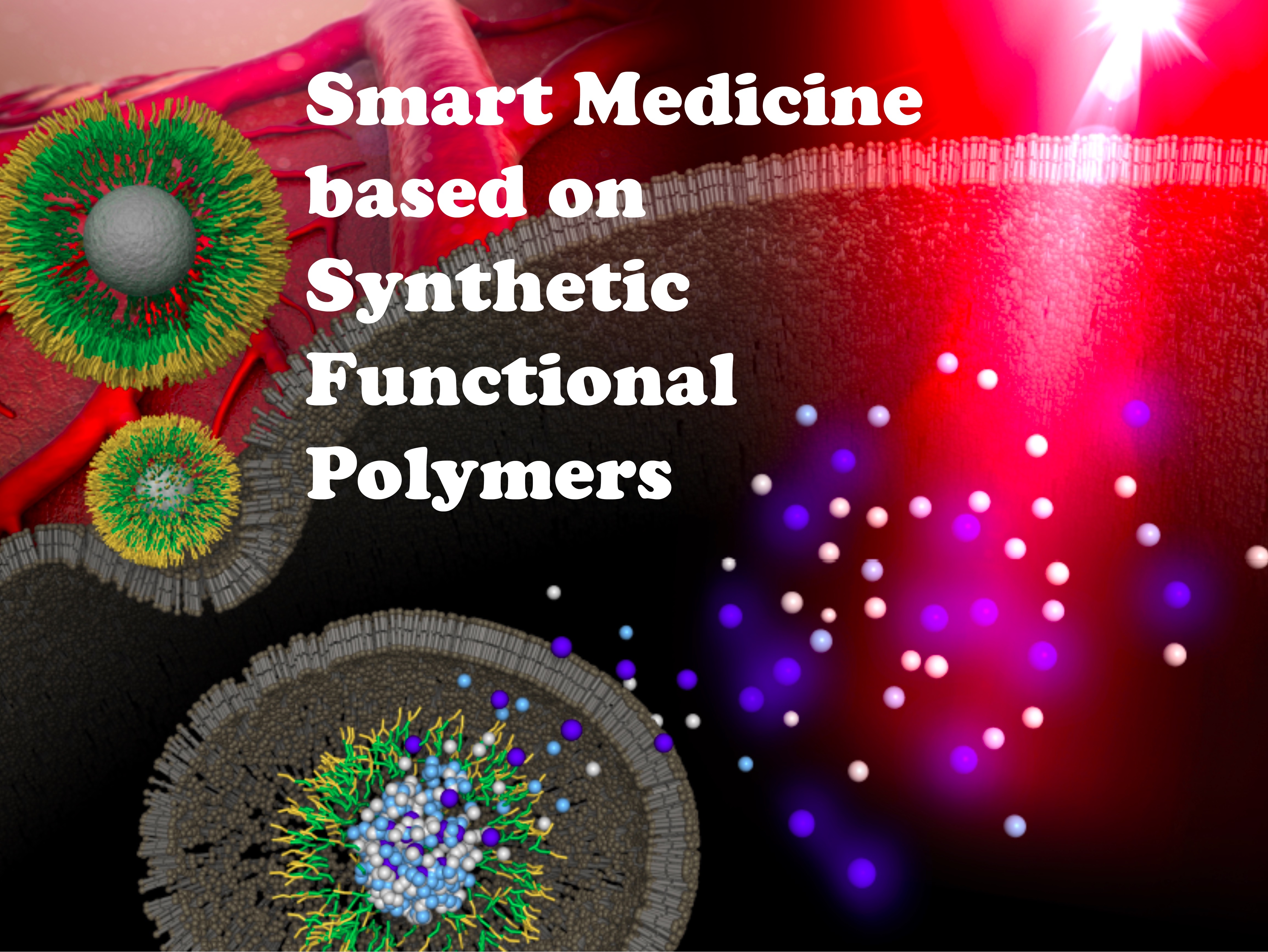 一次構造を精密に制御し、位置選択的に官能基を導入した精密高分子材料に薬剤担持機能、ターゲティング機能、環境応答機能を創り込むことによって生体内で高度な機能を発現するスマート診断・治療システムの研究開発を行っています。これにより、効果に優れ副作用の少ないがん治療、次世代バイオ医薬品(抗体、オリゴ核酸)の実用化、生体機能イメージング、医療機器との融合による超低侵襲治療などを実現することを目指しています。また、新たな概念に基づく、医用高分子材料の開発にも取り組んでいます。