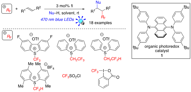 Radical fluoroalkylation of alkenes by organic photoredox catalysis