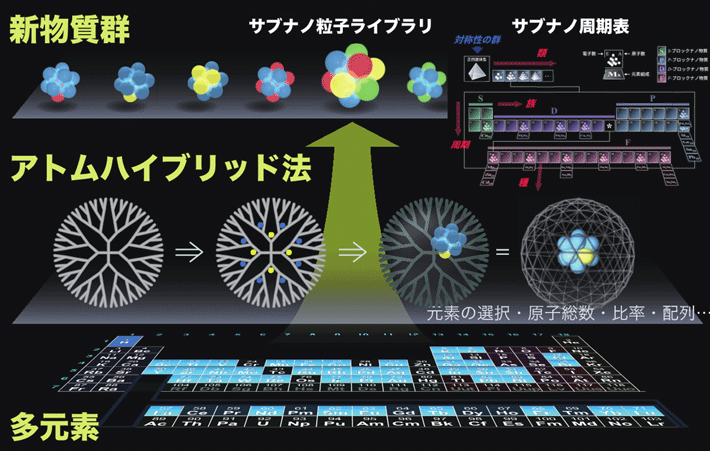 図. アトムハイブリッドによる多元素集積 とサブナノ物質群の創製