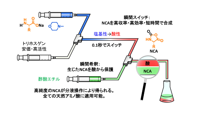 マイクロフローリアクター内での瞬間(< 0.1秒)pH転換に基づくアミノ酸N-カルボキシ無水物(NCA)の革新的合成