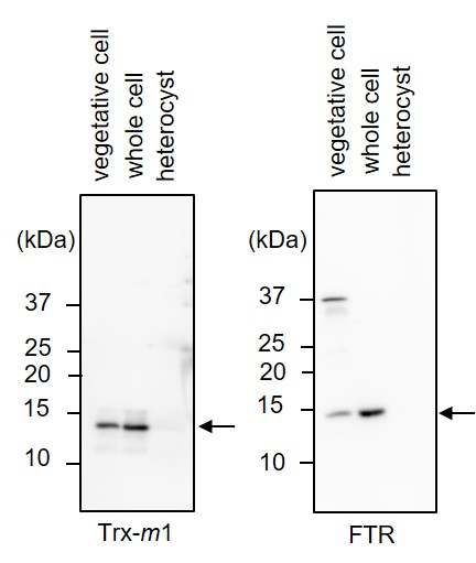 図2 栄養細胞、全細胞、ヘテロシストにおけるFTRおよびTrxの発現