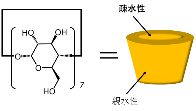 シクロデキストリン(CD)はD-グルコースがa-1,4グリコシド結合によって結合した環状オリゴ糖の一種であり,分子内に空孔を形成する(図1)。この空孔の外部は親水性,内部は疎水性であるため,CDは空孔内に疎水性のゲスト分子を包接するホスト分子としてよく知られている。CDはキラリティを有することから,ゲスト分子が光学異性体を持つ場合,光学異性体ごとにCDへの親和性が異なる。これを利用して,CDを液体クロマトグラフィの固定相に用い,光学異性体を分割するためのキラルカラムとして実用化されている [1] 。しかし,その光学異性体を分離するメカニズムはまだ完全には理解されていない。D-グルコースが7個結合したb-CDは,アミノ酸のような小さなゲスト分子に幅広く適応しているが,b-CDの空孔の大きさは6Åとアミノ酸の大きさ2~3Åよりもはるかに大きく,このように大きなホストが小さなゲストのキラリティをなぜ認識できるのか,明らかになっていない。