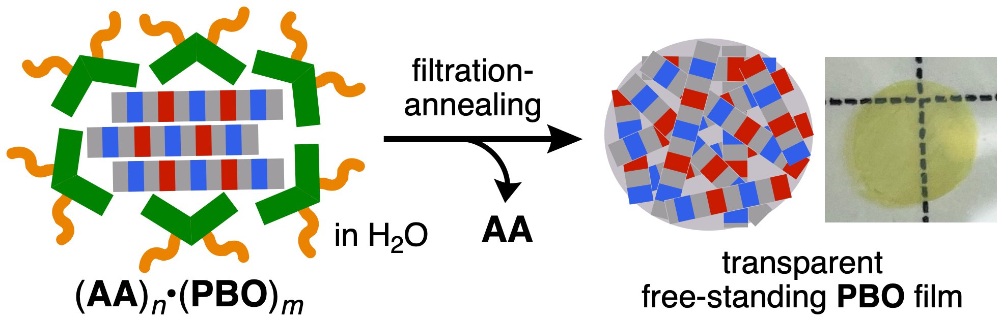 | 図3. | ろ過と熱処理によるPBO薄膜の作製。 |
